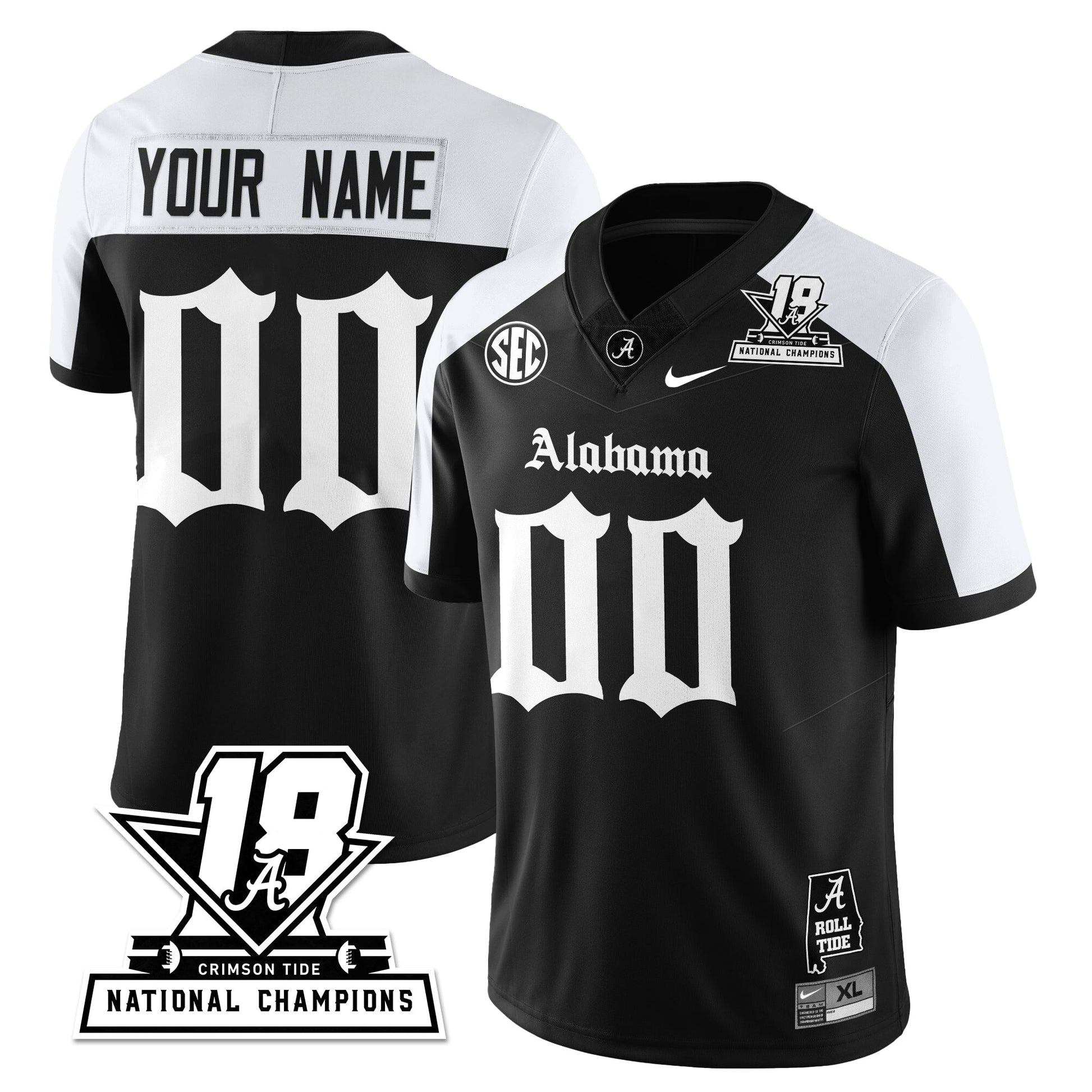 BAMA 18x-Time National Champions Gothic Vapor Limited Custom Jersey - All Stitched