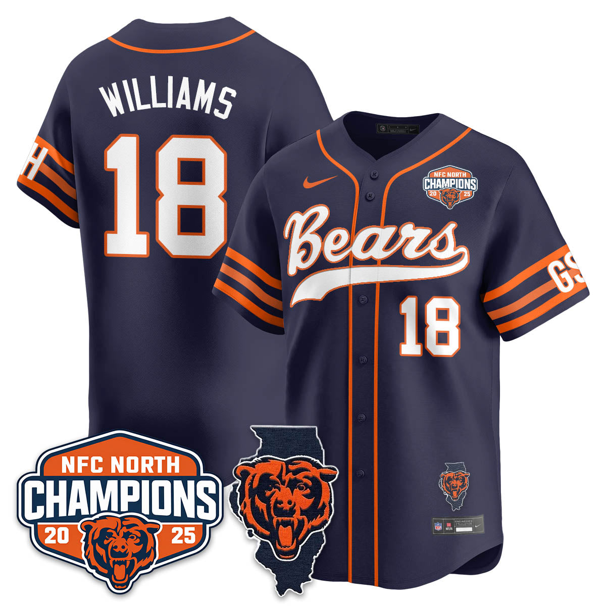 CHI NFC North Division Champions Vapor Limited Baseball Jersey - All Stitched