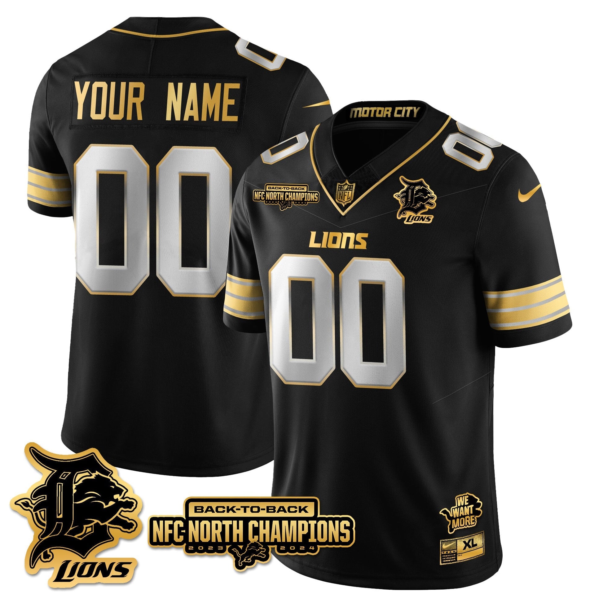 Custom Gender/Name DET 2024 NFC North Champions Gold Jersey N3 - All Stitched