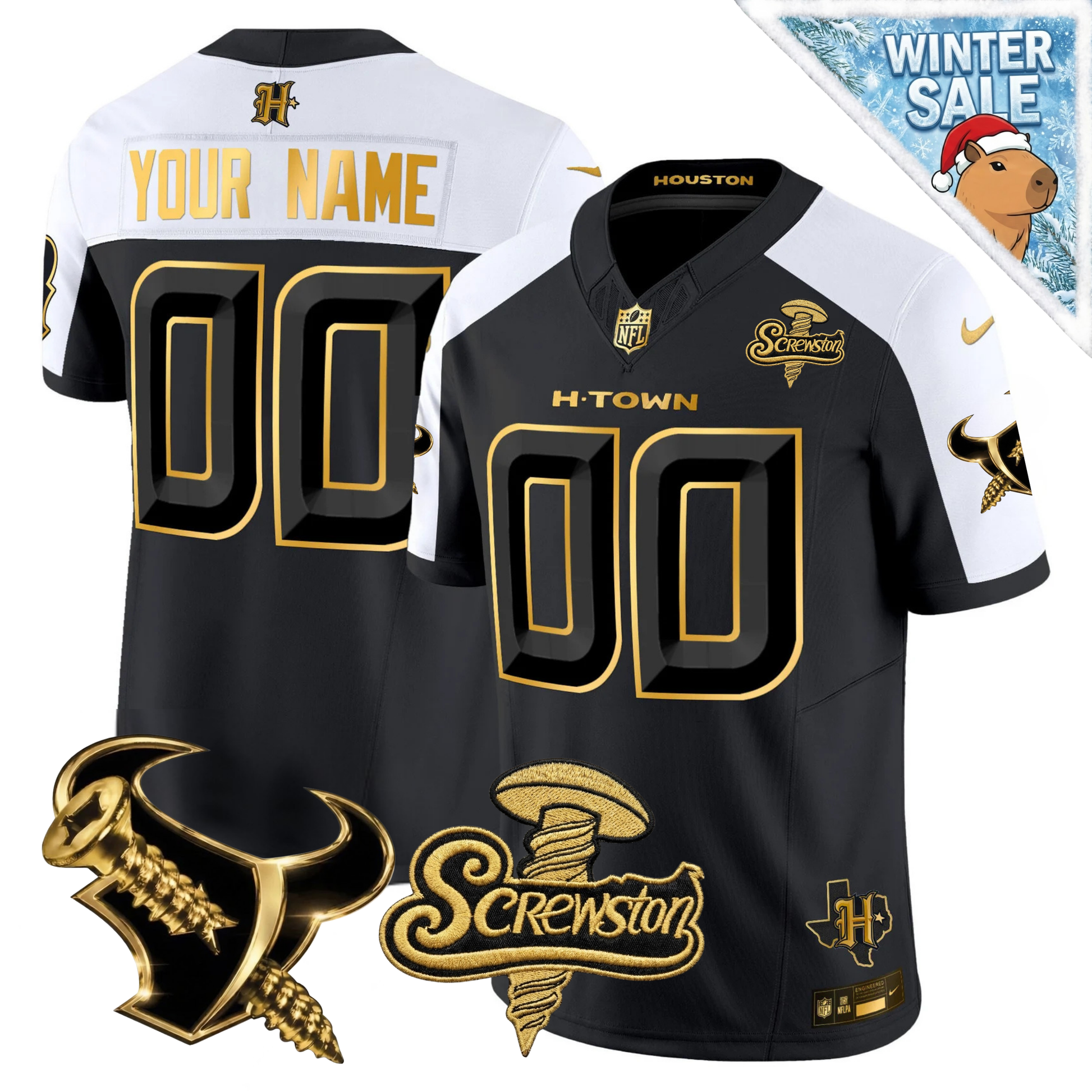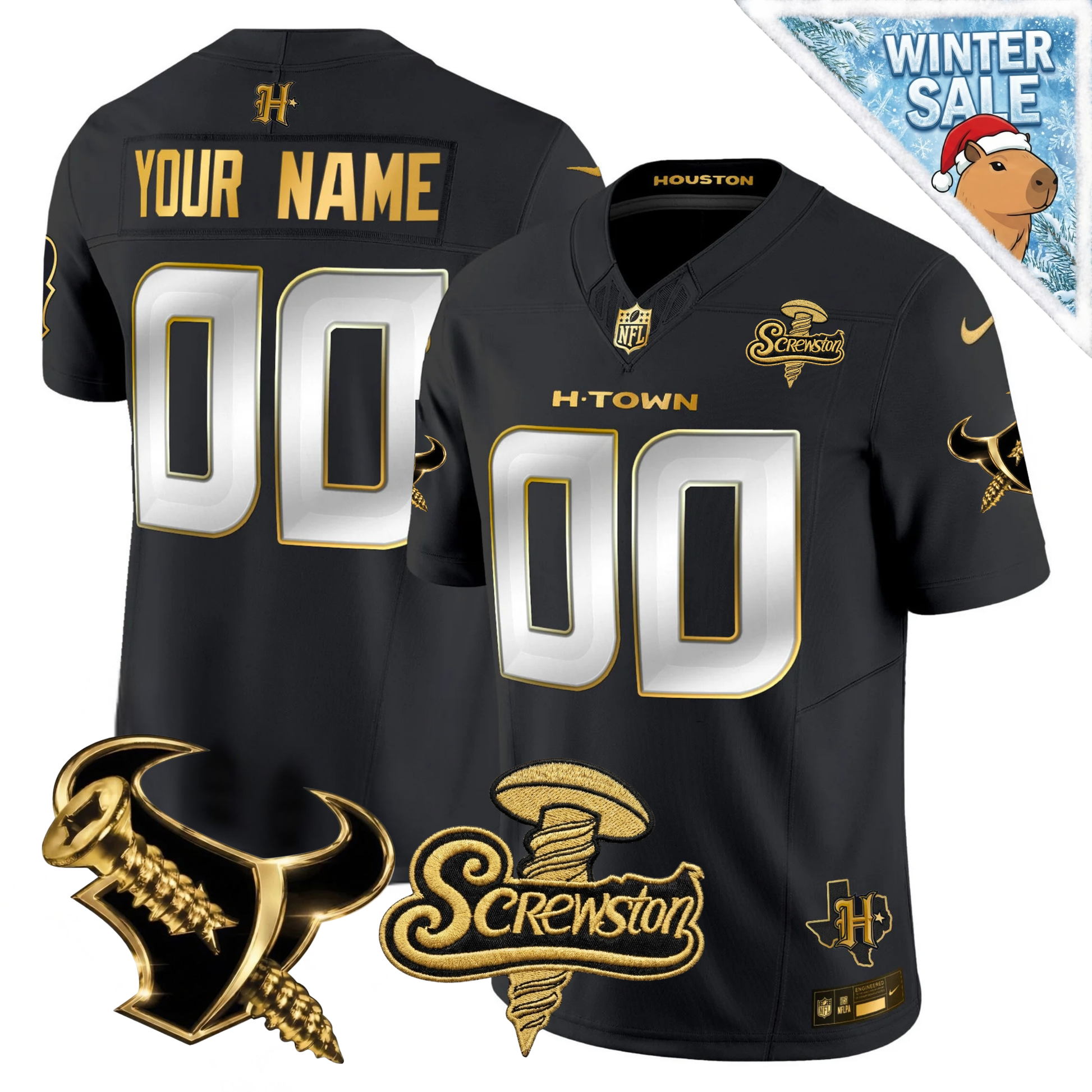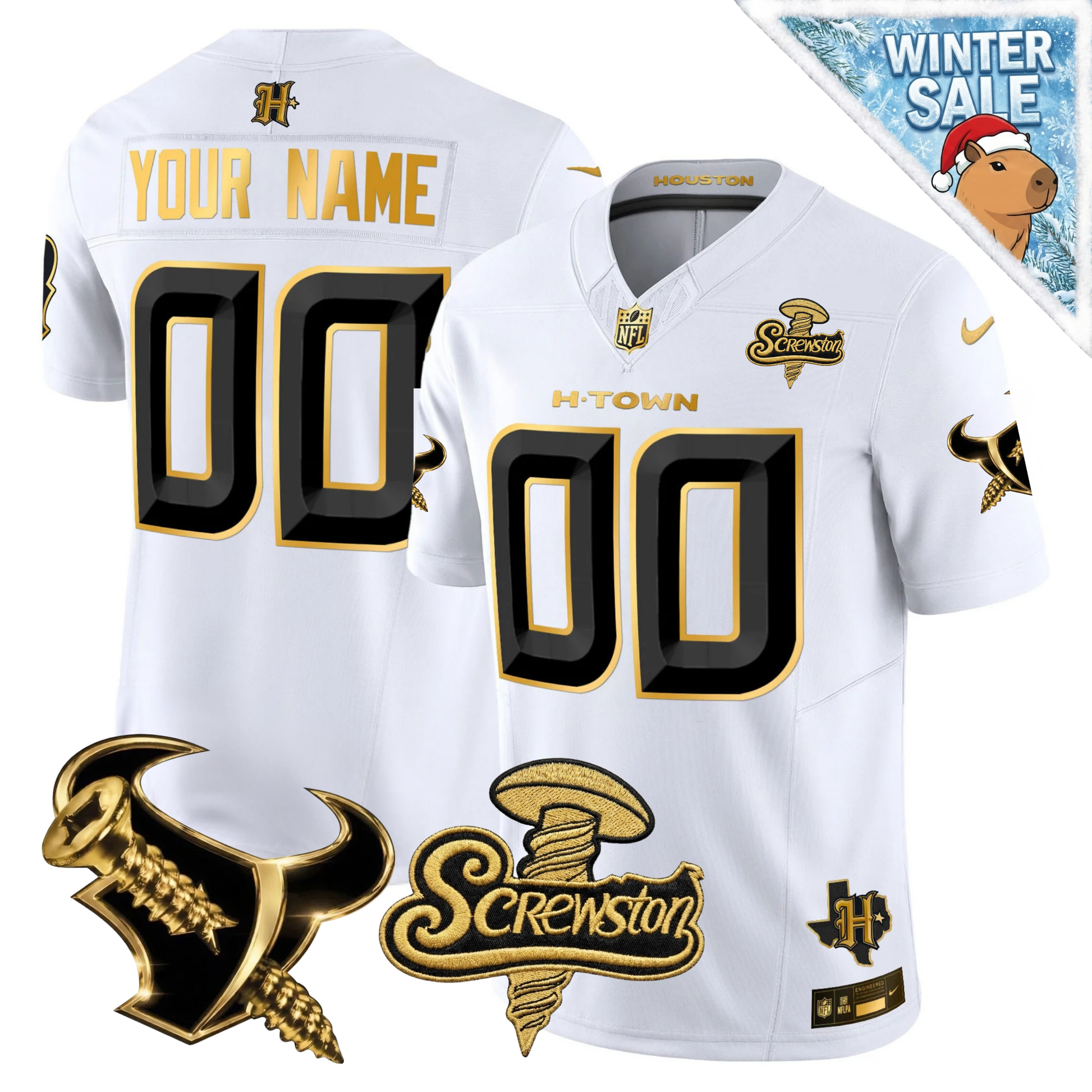 Custom HOU 2026 DJ Screw Vapor Limited Gold Edition Jersey - All Stitched