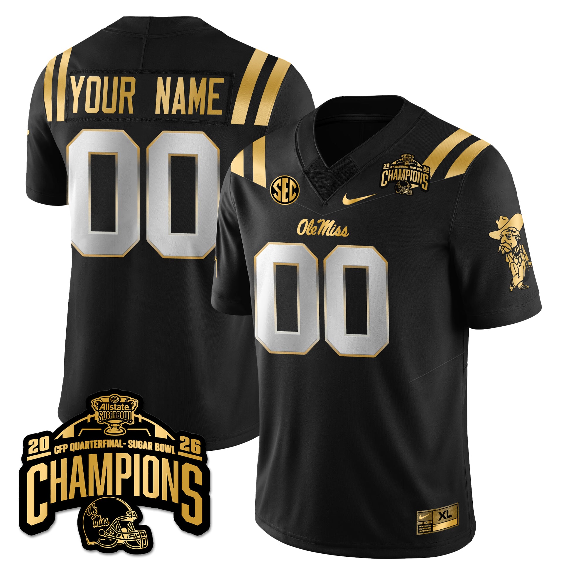 Custom Ole Miss Football Vapor Limited Gold Jersey - Allstate Sugar Bowl Champions - All Stitched