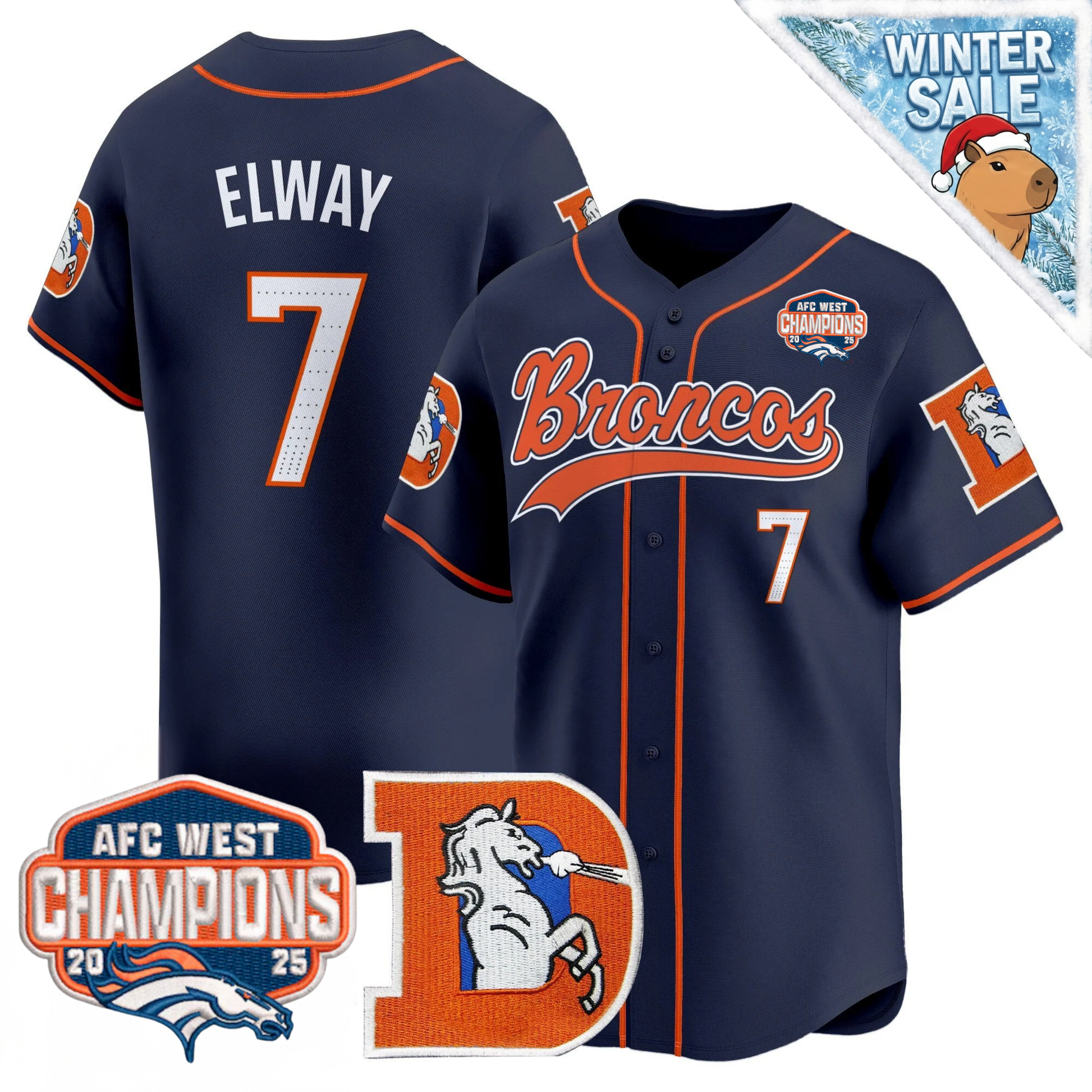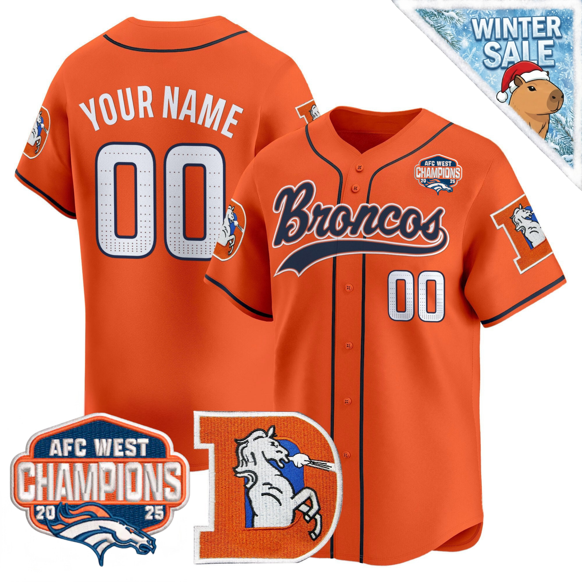 DEN AFC West Champions Patch Throwback Vapor Baseball Jersey - All Stitched