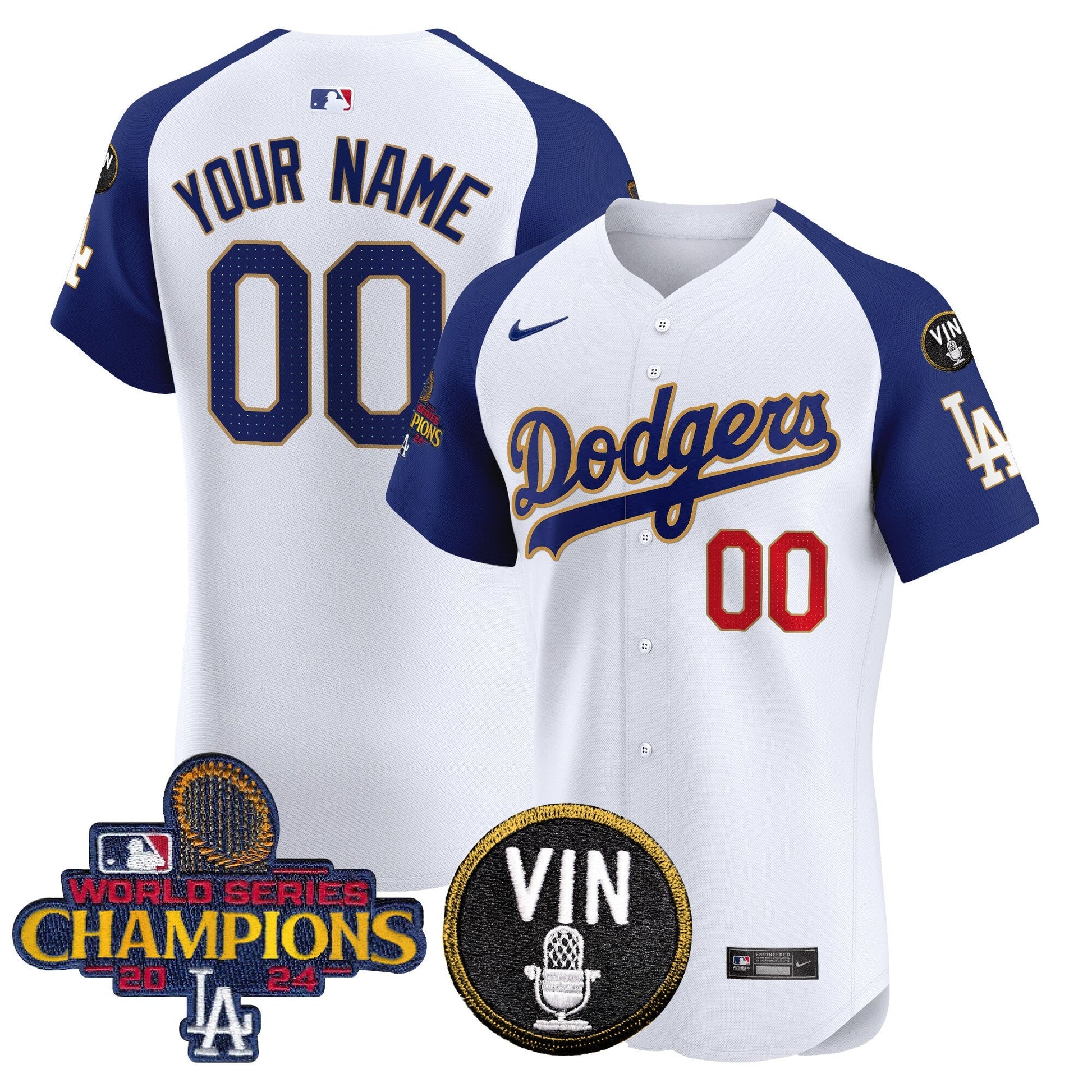 Dodgers 2024 World Series Champions Gold Trim Vapor Premier Elite Custom Jersey - All Stitched